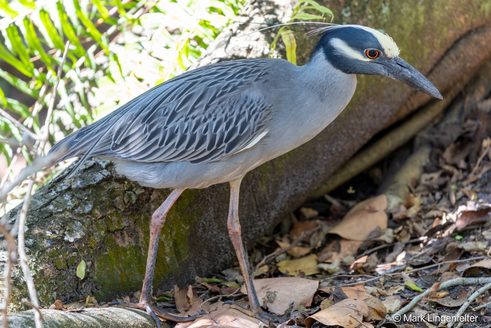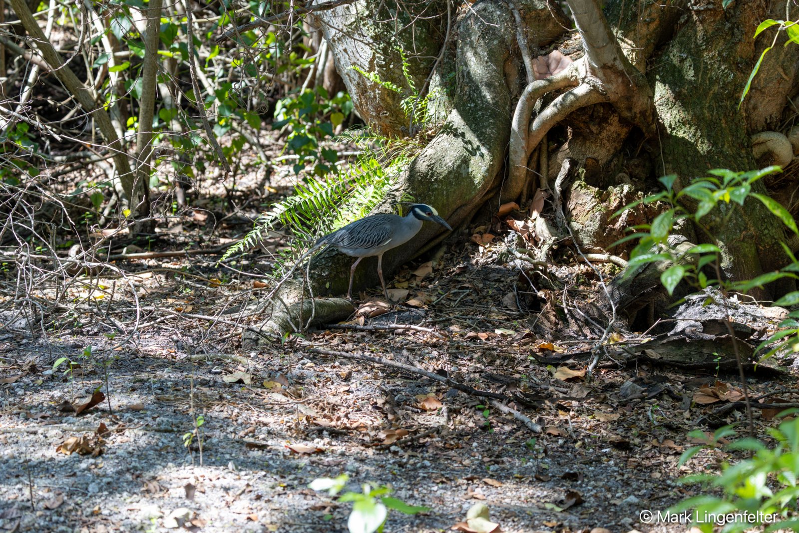 Yellow-crowned Night-Heron likes to hunt and feed at night and we occasionally see them sleeping in the daytime. Here we found him trying to sleep in the mangrove today. I have added photos of another Yellow-crowned Night-Heron we discovered in Richardson Park in Wilton Manor Florida today. Note at one point, probably while trying to sleep, we see his Nictitating Membrane, the protective layer over his eye.