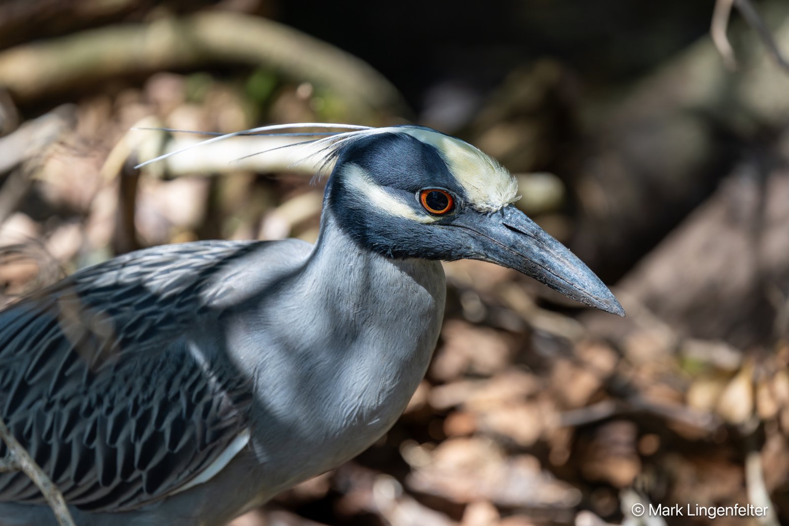 Yellow-crowned Night-Heron complaining about disturbance of his sleep. Naturally they sleep during the day. Can often be found sleeping in the same spot each day. Here in Wakodahatchee Wetlands in southern Florida.
