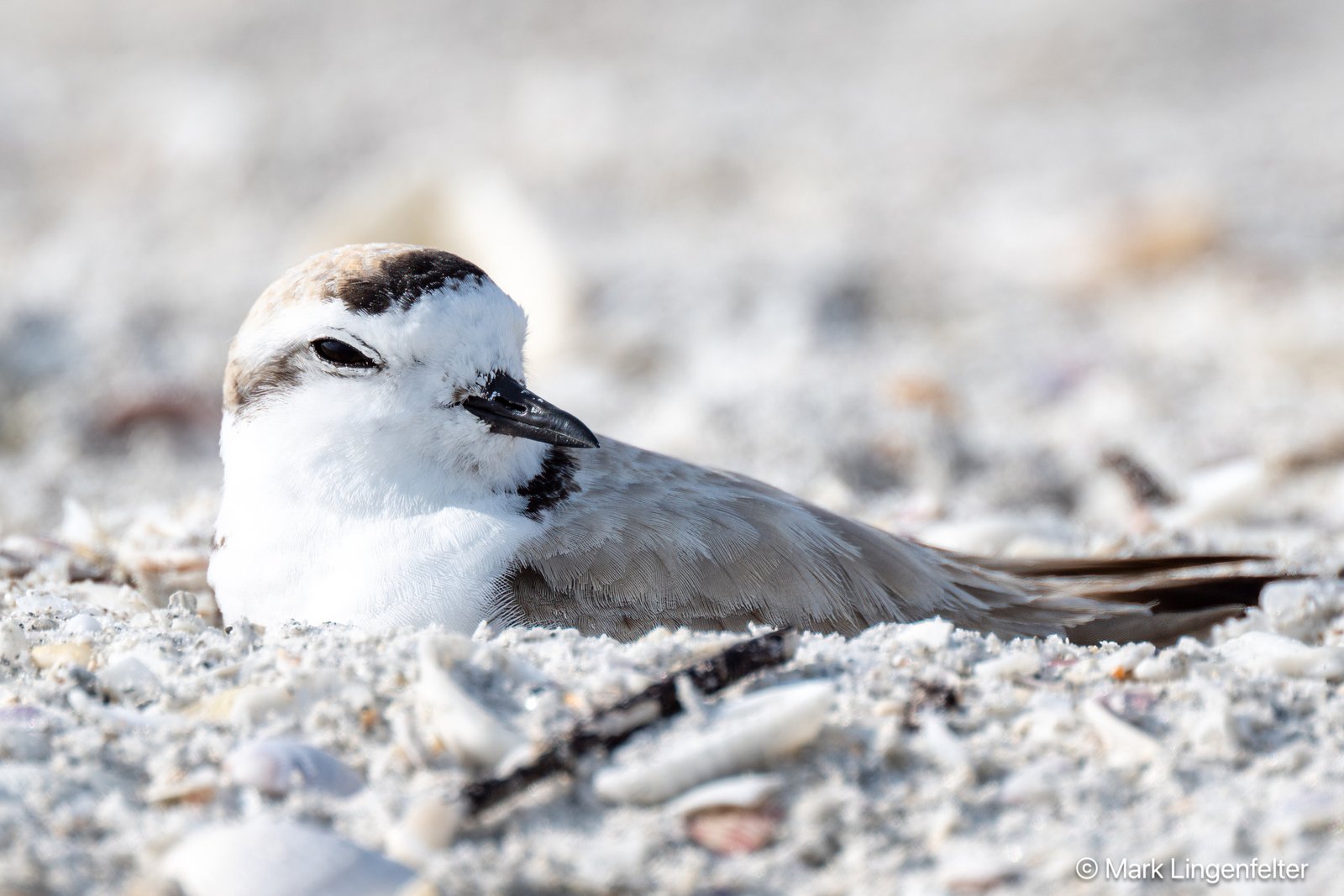 The snowy plover is among the rarest endemic shorebirds in the Americas. Since 2014, it is listed as “Near Threatened” by the IUCN because of a moderately rapid population decline caused primarily by habitat degradation and human disturbance. At the beginning of the breeding season, males excavate multiple nest scrapes that are advertised to females; one of these scrapes is later selected for breeding. Some females will desert their brood soon after the chicks hatch to re-mate with another male, while their first mate will continue to rear the chicks. Such polygamy is uncommon in birds, and is possibly a strategy to maximize breeding success. (Wikipedia )