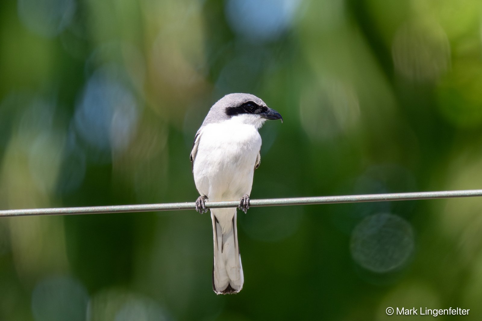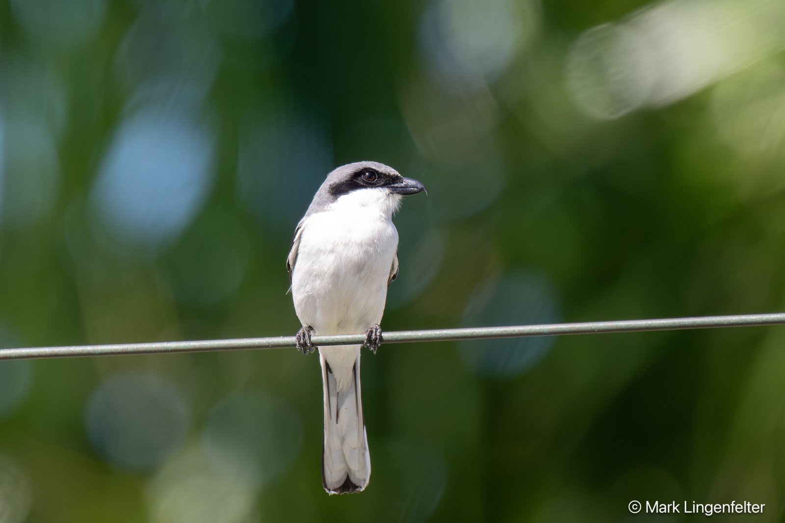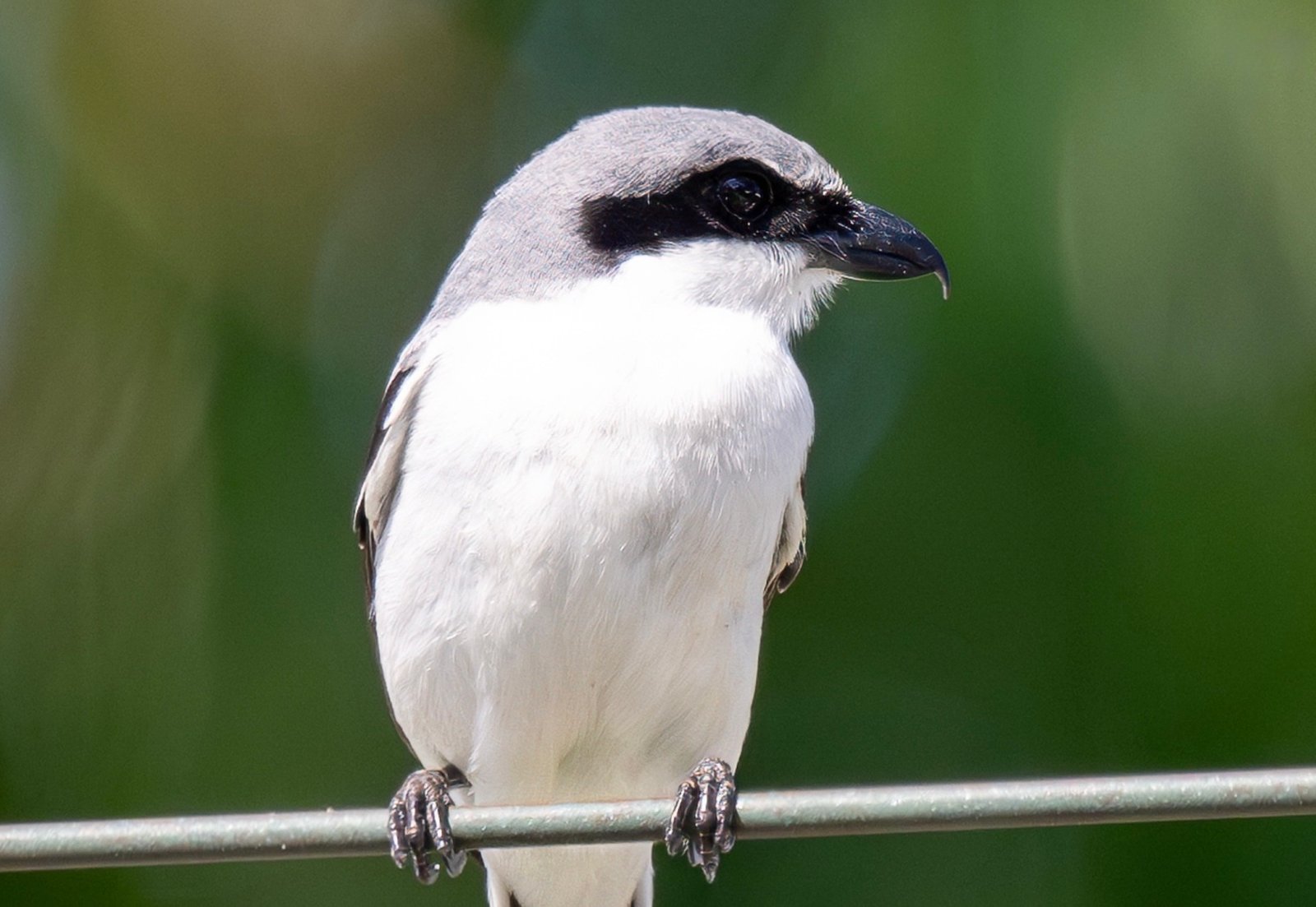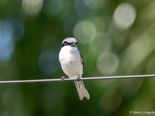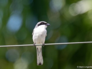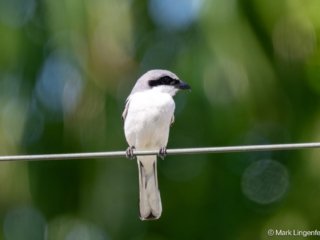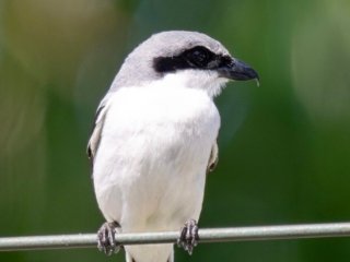 Shrikes are small to medium sized perching birds with a stocky head, short wings, and a long tail. Shrikes are solitary birds. Among the most predatory of passerines, they hunt by watching for prey from perches that offer good vantage points such as power lines, fence posts, and the tops of trees. Once a mouse, small bird, or insect is spotted, they swoop down to grasp the prey item and snap its neck with their bill. The prey item is then carried to a roost for eating or storage for later use. Shrikes, including the Loggerhead and Northern Shrikes, are most well known for their habit of impaling dead prey items such as grasshoppers, mice, and even small birds on thorns or barbed wire. Their habit of storing food in this manner has earned them the nickname of butcherbird. They have strong legs and feet to help with seizing prey, and a distinctive strong, hooked bill that has a tooth-like notch in the upper mandible for cutting the spinal cord of small vertebrate prey.