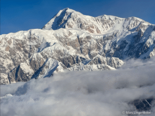 Denali, also known as Mount McKinley, (its former official name), is the highest mountain peak in North America, with a summit elevation of 20,310 feet above sea level. It is the tallest mountain in the world from base-to-peak on land, measuring 18,000 ft. With a topographic prominence of 20,194 feet and a topographic isolation (the distance to the nearest peak of equal or greater height) of 4,621.1 miles. Denali is the third most prominent and third-most isolated peak on Earth, after Mount Everest and Aconcagua. Located in the Alaska Range in the interior of the U.S. state of Alaska, Denali is the centerpiece of Denali National Park and Preserve.From Wikipedia.