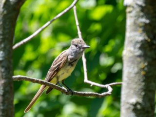 Medium-sized sparrow with brown-streaked upperparts, small white throat patch, and plain gray underparts. White crown has distinct black lines. Wings are brown with two pale bars. Sexes are similar. Juvenile has buff and brown head stripes. Diet consists primarily of seeds and insects. Short flights, alternates rapid wing beats with brief periods of the wings pulled to sides.